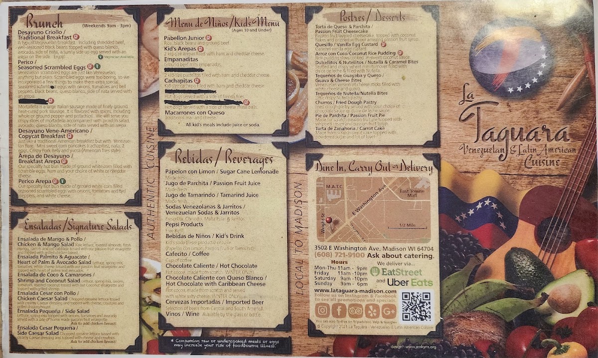 When you're craving something bold and full of flavor, look no further than La Taguara Menu. Located at 3502 E Washington Ave in Madison, WI, this spot is a true gem for anyone who loves vibrant, authentic Latin dishes. The menu offers an array of mouth-watering options, from savory arepas to sizzling grilled meats that are perfectly seasoned. Whether you're in the mood for something light and refreshing or a hearty meal to satisfy your hunger, there's something here for everyone.